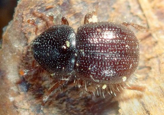 Эти жуки нередко заводятся в деревянных домах, представляя серьезную опасность. Эти черно-коричневые жучки размером не более 1 см прогрызают в древесине множество ходов, разрушая изделие.
